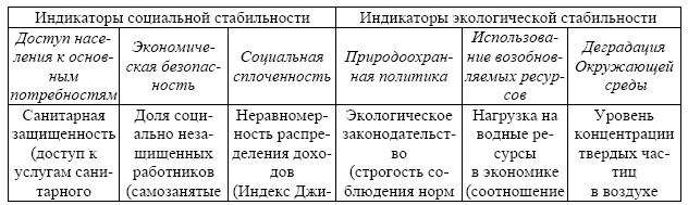Индикаторы и показатели социальной и экологической стабильности