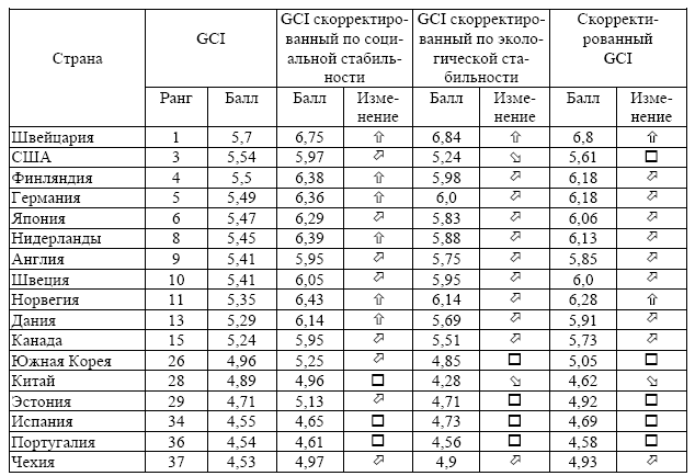 Корректировка Индекса глобальной конкурентоспособности (GCI) по показателям социальной и экологической устойчивости