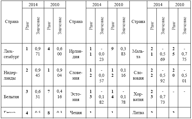 Рейтинг конкурентоспособности стран Европейского Союза за 2010 – 2013 гг.