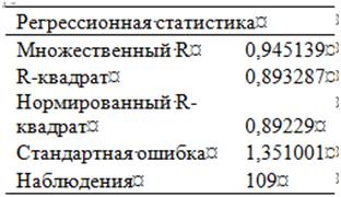 Еще один параметр в таблице 2.2. Наблюдения=109 говорит о том, что в данное уравнение регрессии получено на основе данных по итогам торгов за 109 торговых дней.