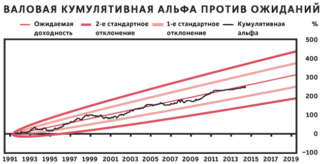 Одни клиенты уловили суть концепции и загорелись идеей изменить правила игры. Другие ничего не поняли, либо организации, на которые они работали, отказались пробовать современные методы. Откровенно говоря, мы были в восторге, что согласился хоть кто-то. Прошло уже 26 лет, и этот «самолет нового типа» ведет себя именно так, как мы и ожидали: мы получали прибыль 23 года (и три года у нас были незначительные убытки) и для своих клиентов в совокупности заработали больше, чем любой другой хедж-фонд за всю историю. Концепции управления инвестициями, лежащие в основе Pure Alpha, в итоге привели к изменению всей отрасли, но путь от их создания до общего принятия занял долгие годы. Это были годы обучения и тяжелой работы вместе с группой преданных партнеров.