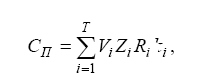 где Vi, Zi, – планируемый объем и цена единицы реализуемой продукции в i-м году,