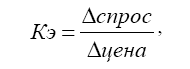 Чувствительность спроса к изменению цены характеризуется показателем эластичности. Эластичность (Кэ) показывает, на сколько процентов изменится зависимая переменная (спрос) в результате изменения независимой переменной (цены) на 1 %.