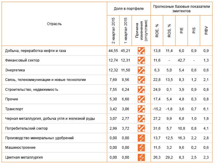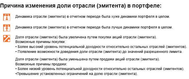 Отраслевая структура позволяет продемонстрировать, какую отрасль управляющий считал наиболее перспективной в отчетном периоде, как изменилась доля той или иной отрасли и по какой причине произошло изменение.