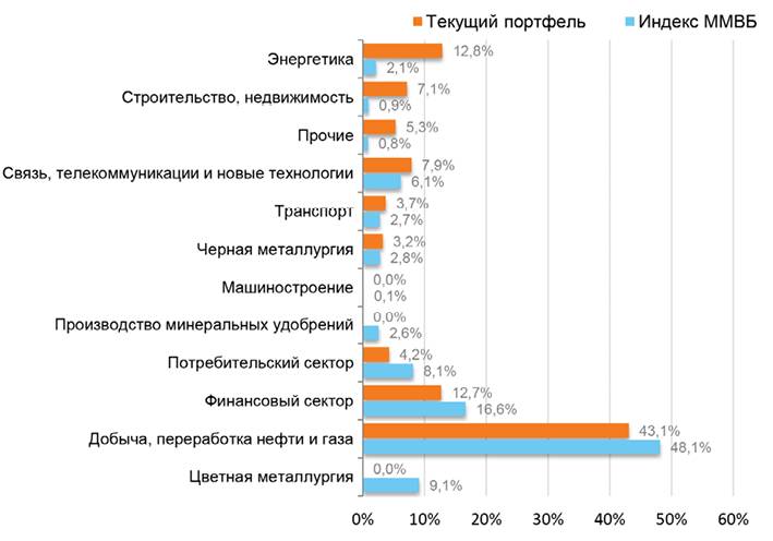 Сравнение отраслевой структуры портфеля со структурой рынка (индекс ММВБ)