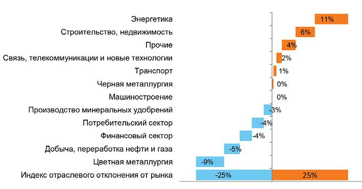 При помощи отраслевой структуры рынка можно продемонстрировать информацию о том, инвестиции в какую отрасль оказались наиболее или наименее результативными.