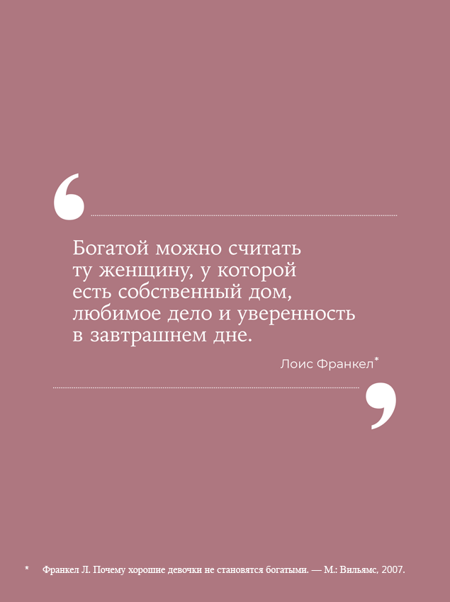 Но почему бы нет? Каждая из вас способна заработать себе на жилье. Возможно, на скромное, но все-таки ваше. Нужен лишь первый взнос, а дальше свое дело сделает ипотека. И с этим лучше не затягивать. В 30 ты снисходительно смотришь на ипотечников: «Бедняги, влезли же в рабство, ни путешествий, ни шопинга». А к 40 видишь, что ипотеку «бедняги» давно выплатили, карьеру построили, путешествуют и живут в своей квартире, а вы опять меняете «хозяина».
