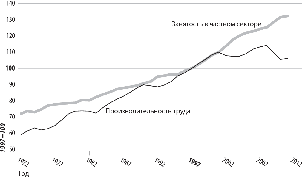 Рис. 11.1. Производительность труда и занятость в частном секторе