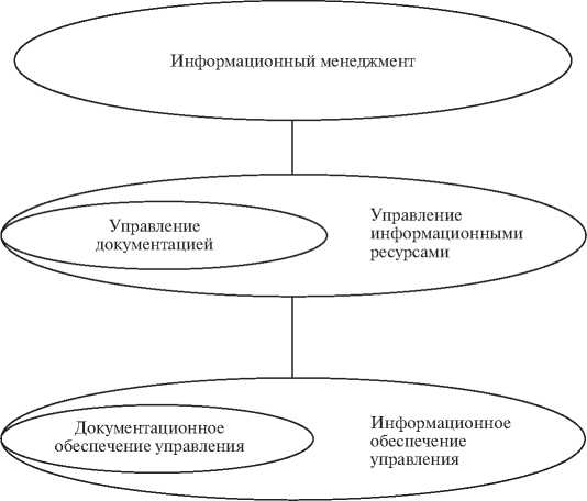 Рис. 7. Соотношение понятий «документационное обеспечение управления», «информационное обеспечение управления», «управление документацией», «управление информационными ресурсами» и «информационный менеджмент»