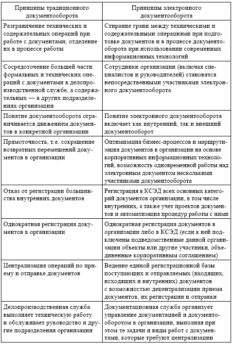 Сравнение прежних и новых принципов управленческого документооборота отражает табл. 6. Выделенные нами принципы электронного документооборота не отрицают базовые принципы традиционного бумажного документооборота, а представляют результат их развития и трансформации.