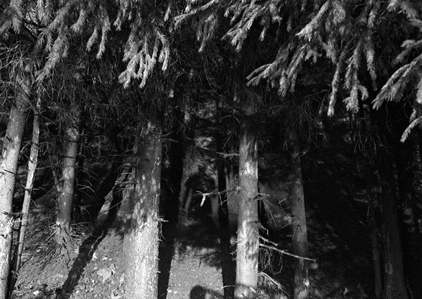 Я шел, не упуская его из виду. Он понял, что его заметили. Проводил до кромки леса и остановился. Я пересек поле, добрался до озера, посидел на берегу. И все мысли у меня, естественно, о нем. Как я пожалел, что не взял с собой камеру! Когда я возвращался, он меня встретил на том же месте и проводил обратно до лагеря. Было уже поздно, темно. А утром я отправился туда, где он ждал меня вчера, и снял наугад. Я уже не видел его. А на фотографии, обратите внимание, он стоит и смотрит прямо на меня. По всем приметам – снежный человек: остроконечная голова, покрыт шерстью. Видимо, такой тип гуманоидов.