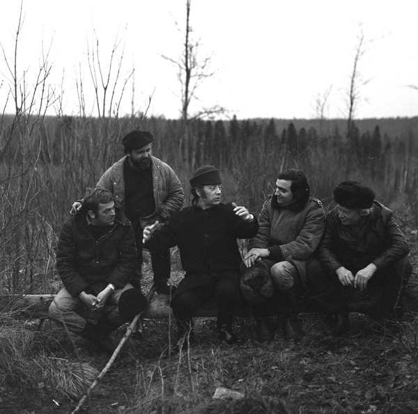 «По дороге на Цыпину гору заехали с Ковалем в деревню у Плещеева озера, где жили наши друзья, художники и писатели, – рассказывает фотограф Витя Усков. – Художник Николай Устинов, как есть лесовичок, явился нам в красной рубахе навыпуск: «Ребята, – говорит, – я только что с Индии приехал!» На бревнышко с нами присел Анатолий Васильевич Митяев, известный детский писатель, фронтовик, а с ним писатель и художник Саша Дорофеев. Все выпили, закусили. Пошли рассказы».