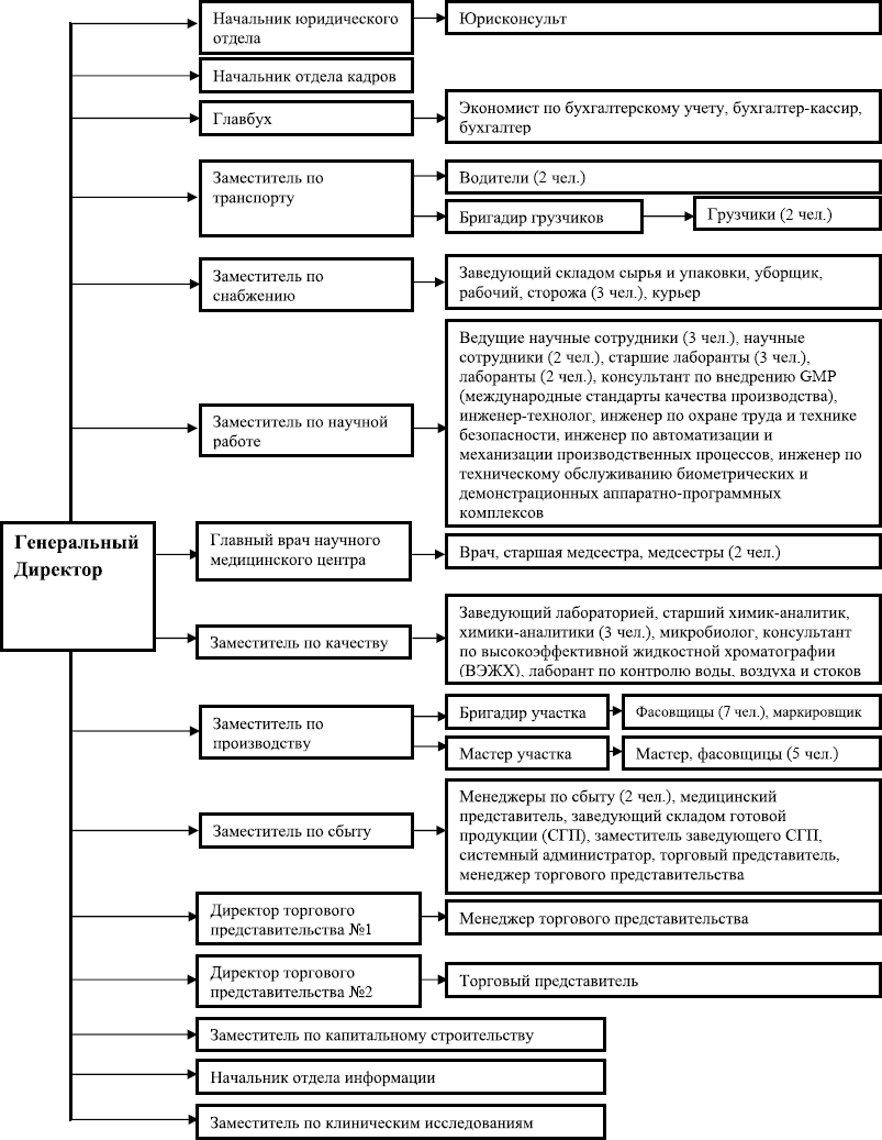 В новой структуре (рис. 26) часть функций Генерального директора была передана новой должности – первому заместителю Гендиректора, часть – линейным руководителям; были устранены лишние и дублирующиеся элементы, зоны «безответственности» в результате уточнения полномочий и ответственности должностей как по вертикали, так и по горизонтали.