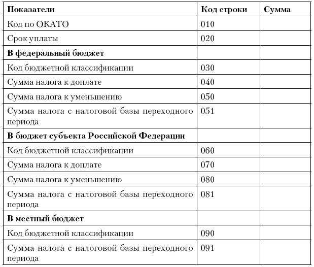Подраздел 1.1. Для организаций, уплачивающих авансовые платежи и налог на прибыль