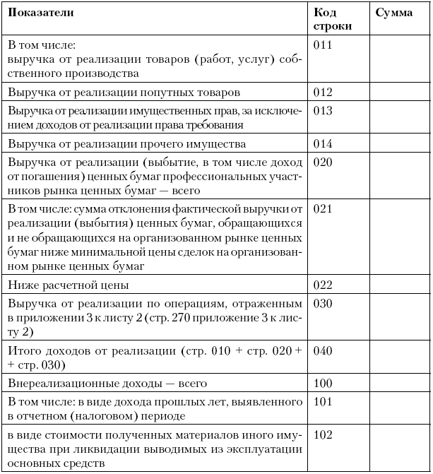 Доходы от реализации и внереализационные доходы (приложение 1 к листу 2 декларации)