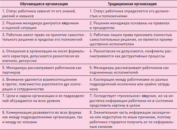 Таблица 4.5. Отличия обучающейся организации от традиционной организации