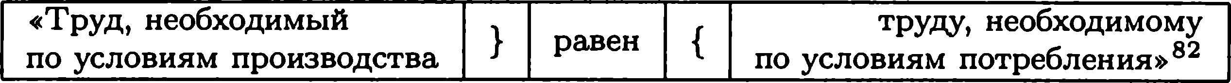 Примат производства по отношению к потреблению при этом сохраняется: их равенство в конечном счете обусловливается левой частью — затратами труда, необходимого по условиям производства, т. е. мера потребления ограничивается затрата