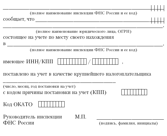 О ПОСТАНОВКЕ НА УЧЕТ В НАЛОГОВОМ ОРГАНЕ ЮРИДИЧЕСКОГО ЛИЦА В КАЧЕСТВЕ КРУПНЕЙШЕГО НАЛОГОПЛАТЕЛЬЩИКА
