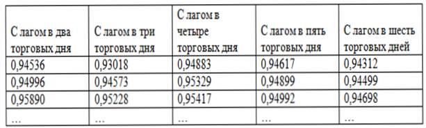 Таблица 4.4. Наиболее убыточные торговые дни с лагом в 2,3,4,5,6 торговых дней