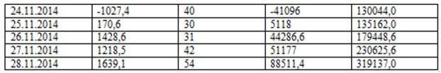 Подробнее результаты торгов – см. таблицу 4.7. В результате за весь период счет трейдера вырос с первоначальных 100 тыс. рублей до 319,137 тыс. рублей или в 3,191 раза.