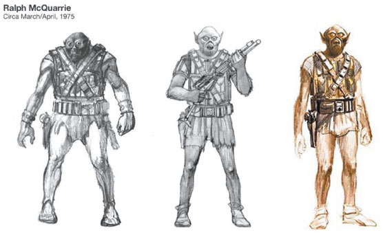 Рис. 8.1. Великолепный Kitbashed.com Майка Хейлемана, отображающий хронику создания «Звездных войн», приводит ранние концепции Чубакки от Маккуори. Образ, определенно, изменился