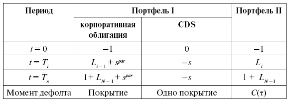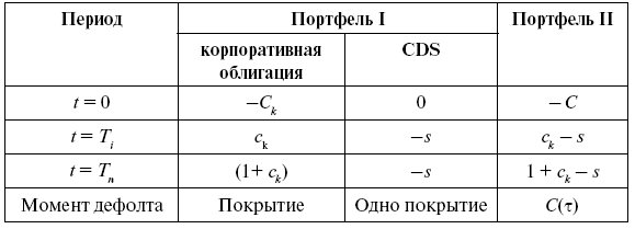 Поскольку корпоративная облигация посредством CDS защищена от дефолта, можно сказать, что Ск(0) = С(0), т. е. в нулевой момент времени стоимости портфелей равны из-за одинаковых свойств (иначе появляется возможность реализовать арбитражную операцию).