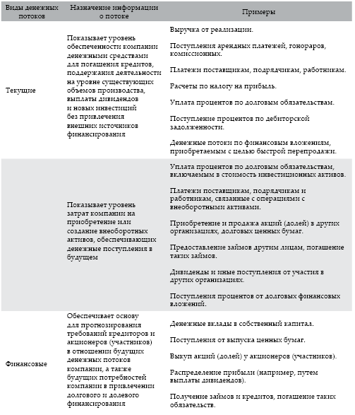 Подробную классификацию денежных потоков от различных видов деятельности, приведенную в ПБУ 23/2011, можно представить в виде таблицы: