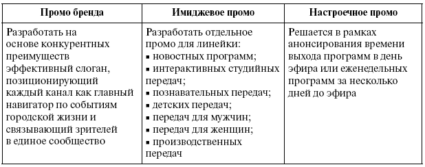 Программа для всех трех видов промоканалов холдинга приведена в табл. 5.4.