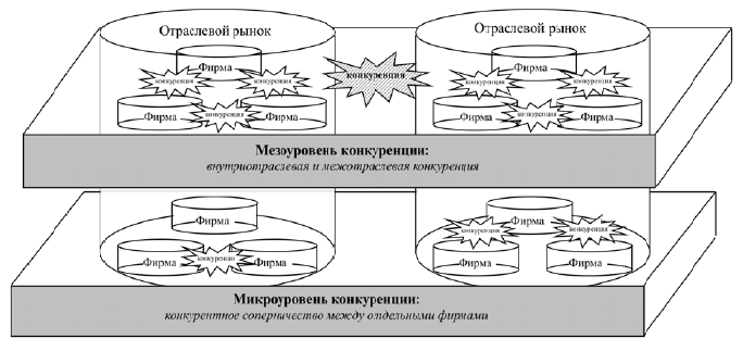 Рис. 4.3. Микроконкуренция в сравнении с внутриотраслевой и мезоконкуренцией.