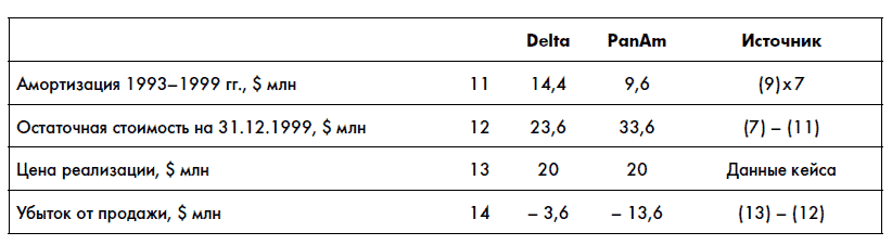 Теперь давайте посмотрим на результаты продажи самолета в конце 1999 г. (продолжение предыдущей таблицы):