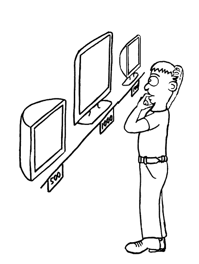 Даже если вы ничего не понимаете в технике, а словосочетания «цифровой индикатор» создает на вашем лице гримасу недоумения, то Интернет легко «подкует» вас в этой сфере знаний. «Мировая паутина» изобилует разнообразнейшими статьями и обзорами, которые «на пальцах» объяснят вам принципы работы, функции и нюансы использования того или иного предмета бытовой техники. Я, например, изучил несколько обзоров и отзывов, прежде чем определился, какой мне нужен телевизор. Ведь до этого я совсем не понимал разницы между жидкокристаллическим и плазменным телевизорами, а также не знал, в чем состоят их преимущества и недостатки. Кроме того, с помощью Интернета я наконец понял, что такое «домашний кинотеатр». Как оказалось, в домашний кинотеатр можно превратить любой телевизор, и все, что для этого нужно, – присоединить к нему дополнительную систему акустики. Только после того, как мой информационный вакуум относительно ТВ-техники был заполнен, у меня, наконец, появилось твердое представление о том, какой мне телевизор нужен. Оставалось только пойти в магазин и ознакомиться с ассортиментом, имеющимся в продаже. То же самое я делал перед покупкой кондиционера и микроволновой печи.