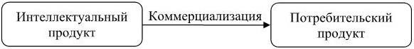 Именно коммерциализация интеллектуального продукта через реализацию инновационной идеи, основанной на использовании этого интеллектуального продукта, позволяет получить экономическую выгоду. На рис. 2.2 представлена указанная связь: инновация (в виде потребительского продукта), внедренная на рынке, приносит прибыль (происходит обмен «инновация – деньги»).