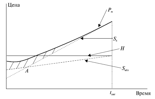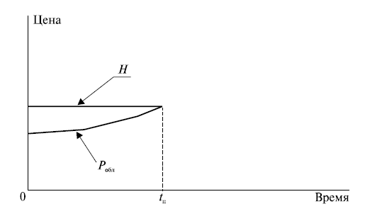 Как видно из рис. 4.3, облигационная стоимость (Робл) ниже номинала (Н), но она постепенно повышается по мере приближения срока погашения (tп).