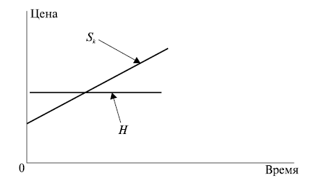 Конверсионная стоимость (Sk) может расти или падать в соответствии с динамикой цен на акции рассматриваемой компании и быть выше или ниже номинальной стоимости (Н) облигации.