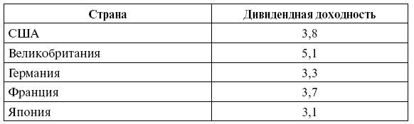 Статистика за достаточно длительный период показывает, что в развитых странах дивидендная доходность составляет 3–5 % (табл. 4.1).