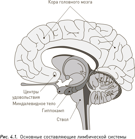 Продолжим наш урок анатомии. От срединной линии лимбической системы к вискам расходятся два симметричных проводящих пути, каждый из которых заканчивается миндалевидным телом. Миндалевидное тело или миндалина, парная структура головного мозга, формой напоминающая миндальный орех, участвует в формировании самых сильных отрицательных эмоций – отвращения, страха и ненависти. Опять-таки не будет чрезмерным упрощением, если мы назовем их «центрами страха». Важно и то, что с ними соседствует гиппокамп, который участвует в процессах консолидации памяти.