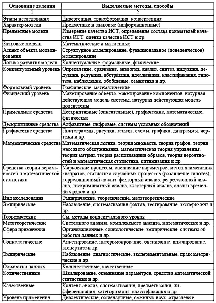 Существенным вопросом методологии моделирования КУИОТ является типология методов, применяемых в задачах КУИОТ (таблица 2.1). На основе выделенного класса методов и средств в дальнейшем могут быть построены алгоритмы решения задач КУИОТ. В организации КУИОТ доминирующим признаком является интеграция. Этот сложный процесс реализуется посредством применения методов дивергенции, трансформации и конвергенции.