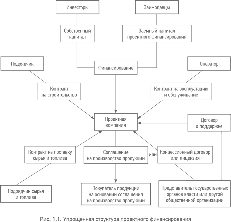 Проектное соглашение детально будет рассмотрено в главе 5, а другие проектные контракты – в главе 6. Конечно, ни одна из этих структур или договорные отношения не являются уникальными для проектного финансирования; любая компания может иметь инвесторов, подписать контракты, получить лицензию у правительства и тому подобное; однако взаимная значимость этих вопросов и способ, которым они связаны между собой, – это ключевой фактор проектного финансирования.