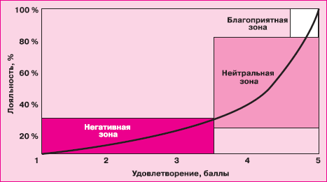 Исследуя взаимосвязь между степенью удовлетворенности потребителя и его лояльностью, можно выделить следующие три зоны лояльности потребителей: