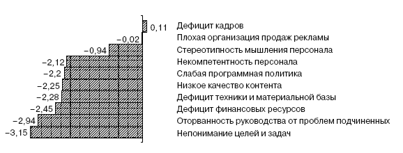 Рис. 3.2. Оценка слабых сторон компаний респондентами (средний балл фактора по шкале от —5 до +5)