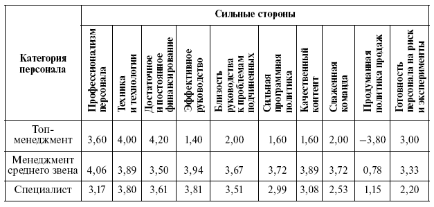 Таблица 3.4. Оценка сильных сторон разными категориями работников