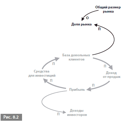 Давайте вернемся к петлям, которые мы рассматривали в главе 5 и которые описывают двигатель (стимулятор) роста бизнеса (рис. 8.1).