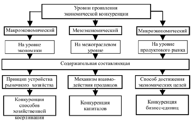Многообразие форм проявления конкуренции и выполняемых ею функций свидетельствует о том, что конкуренция представляет собой многоуровневую систему. Поэтому ее анализ нуждается в применении системного подхода. Его сложность заключается в том, что конкуренция является динамической системой и должна исследоваться как процесс. Это ставит задачу выявления внутренних источников и закономерностей развития этой системы. Ее решение связано с установление сущности, содержания и форм существования конкуренции.