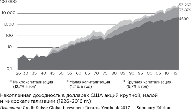 Но будем осторожны. Принцип «чем меньше, тем лучше» опасно линейно экстраполировать. Например, лучше избегать акций третьего эшелона. Не будем забывать, что «акции малой капитализации» с графика выше — это все-таки ликвиды, входящие в национальный индекс либо на подступах к нему. Эти компании стоят миллиарды, сделки по ним совершаются каждый день.
