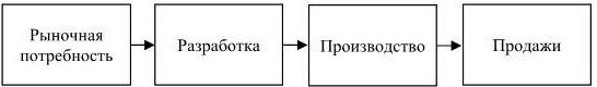 Второе поколение моделей инновационного процесса (конец 1960-х – начало 1970-х гг.) также представляет собой линейную последовательность этапов, но уже предполагалось, что инновации возникают в результате обнаружения потребностей покупателей (рыночная потребность), рис. 2.6.