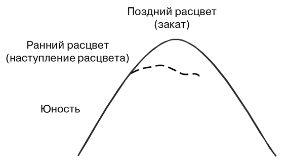Расцвет – это промежуточное состояние между ростом и старением. Это конец начала и начало конца. Расцвет состоит из двух периодов – нарастания и заката, не существует какой-то единственной точки. Организации должны уметь распознавать симптомы, сигнализирующие о начале спада. Это поможет им принять меры, которые замедлят старение и омолодят их, удерживая в состоянии расцвета.