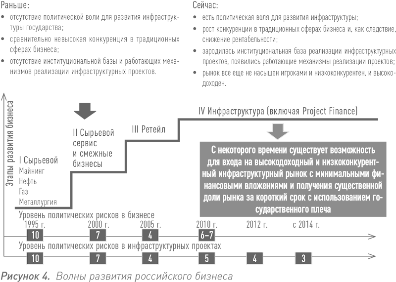 Потому нет ничего удивительного в том, что в нашей стране в ближайшее время постепенно все большее внимание уделяется вопросам бизнеса в инфраструктуре. Причем законы экономики, как и физики, отменить невозможно, это и дальше будет происходить как в случае оптимистичного сценария развития экономики, так и базового. Пожалуй, только при чрезвычайно депрессивном сценарии развития страны у нас будет меньшее количество инфраструктурных проектов. Но и это не означает, что в России они вовсе не будут реализовываться. Просто вместо потребных государству сотен и тысяч проектов инкубироваться будут десятки и сотни, что также приведет к появлению новых игроков на рынке. Правда, их тоже будет меньше, чем в случае оптимистичной траектории развития экономики. Но они будут.