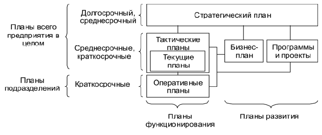 Вполне закономерным в современных условиях будет положение, когда предприятия самостоятельно решают вопросы построения системы плановых документов, определяя ее структуру, периодичность разработки и пр. Поэтому конкретные периоды планирования, состав показателей и способы плановых расчетов устанавливаются руководством предприятия также самостоятельно с учетом особенностей конкретного производства. Вместе с тем, хотелось бы отметить, что наибольший эффект от планирования будет достигаться, когда используется вся система планов, все ее элементы в их взаимной связи и обусловленности. Игнорирование одних и преувеличение роли других видов планов необоснованно.