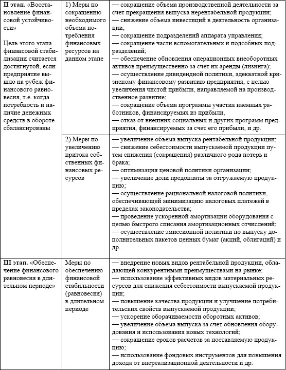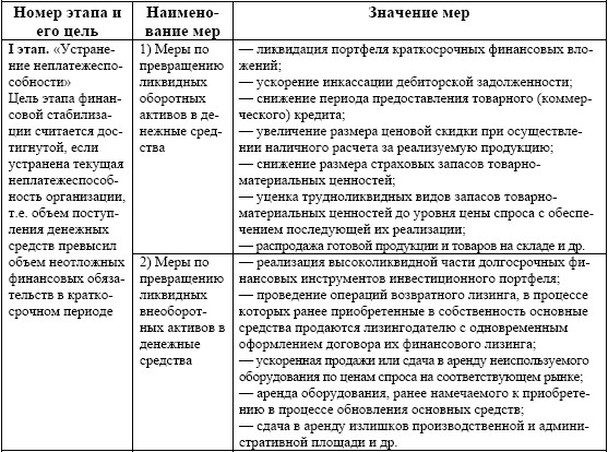 Этапы и меры стабилизации финансового состояния организации