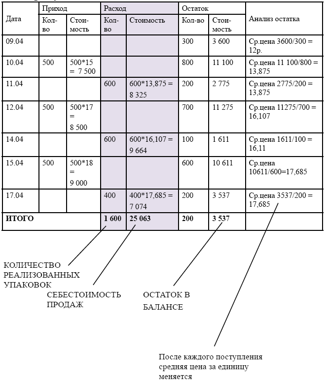 • AVCO – списание в себестоимость по средневзешанной оценке (average cost – средневзвешанная стоимость);